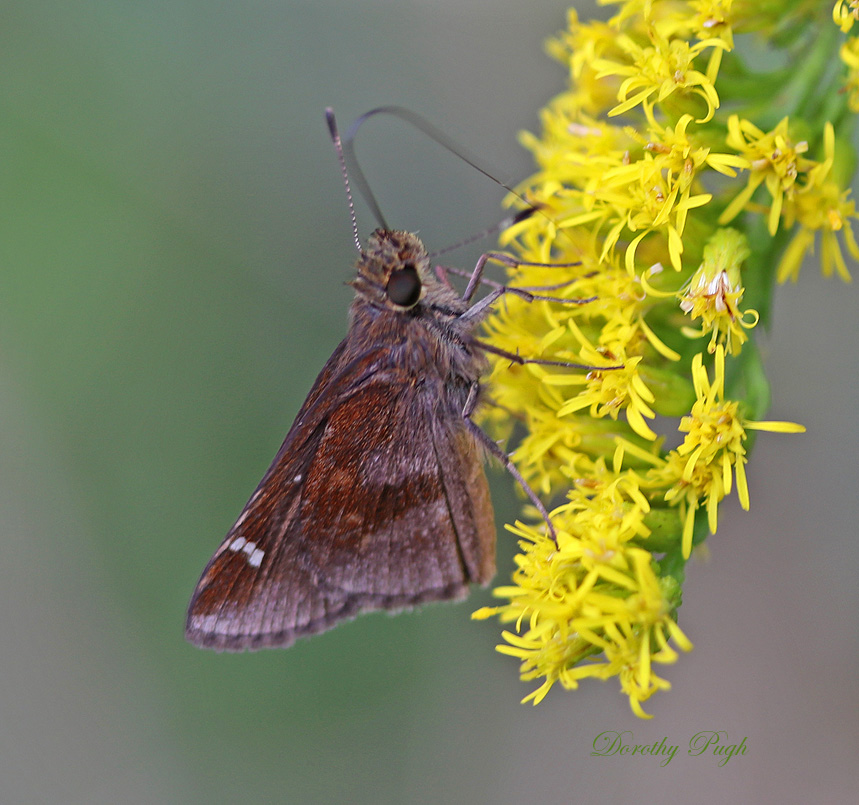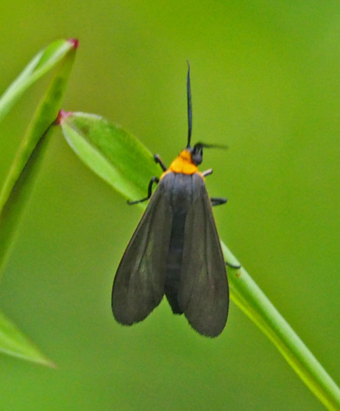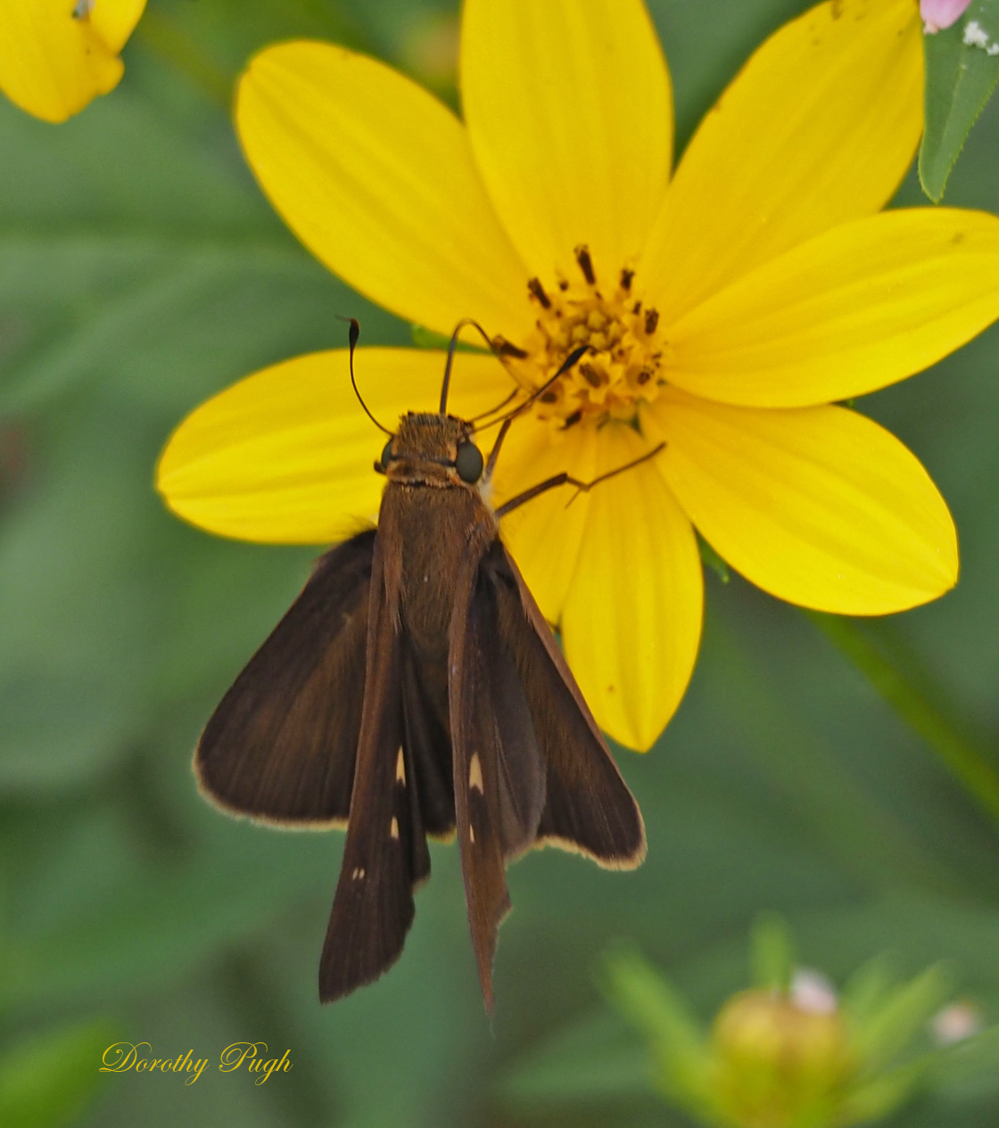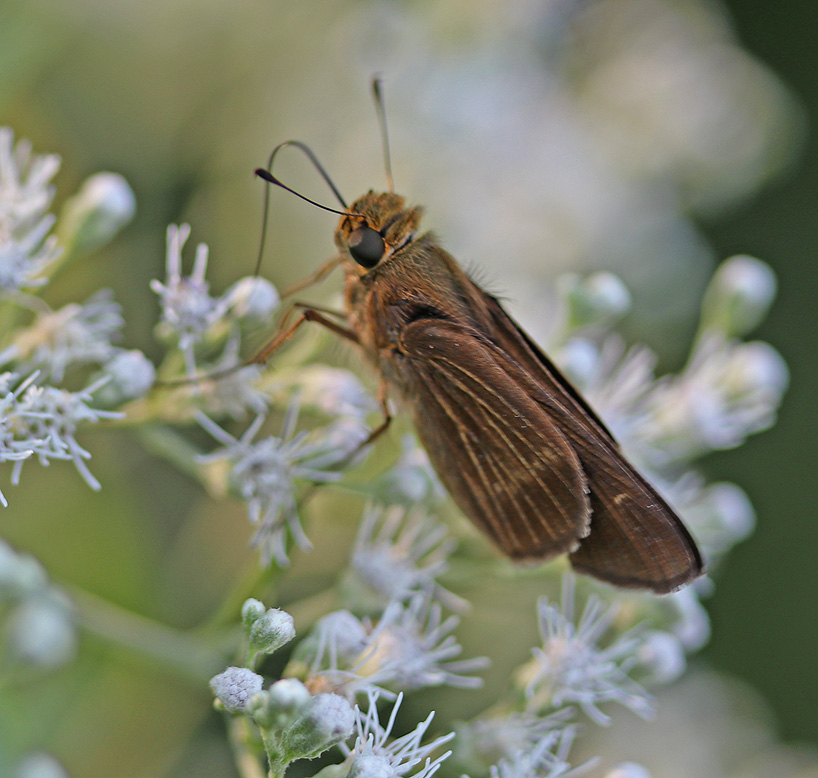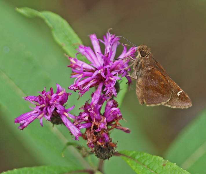 Snowberry Clearwing Moth headed toward Pickerelweed |