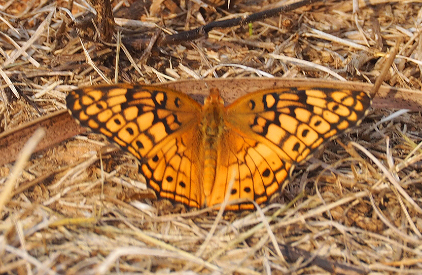 The most surprising discovery was a group of water scavenger beetles, apparently trapped by viscous water and some large debris, in the stream leading from the lake in the direction of the pond. A recent rain had brought this water, but the remaining mud apparently restricted their movement, causing them to get stuck on their backs and clustering around a fallen branch.