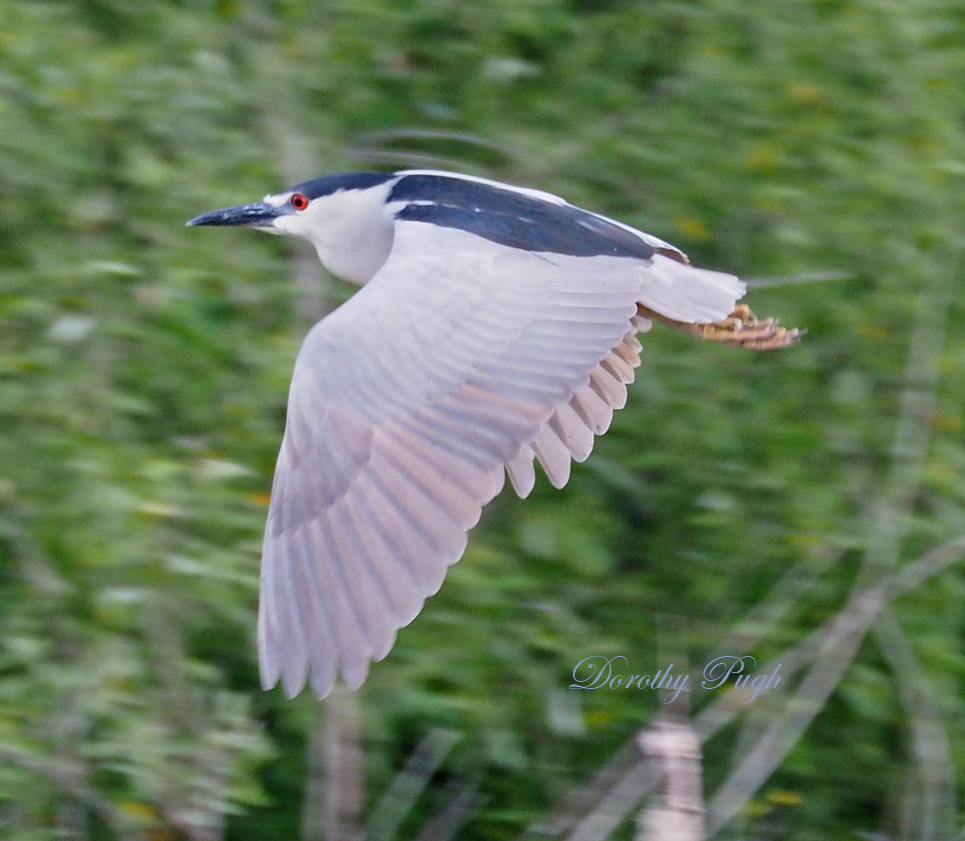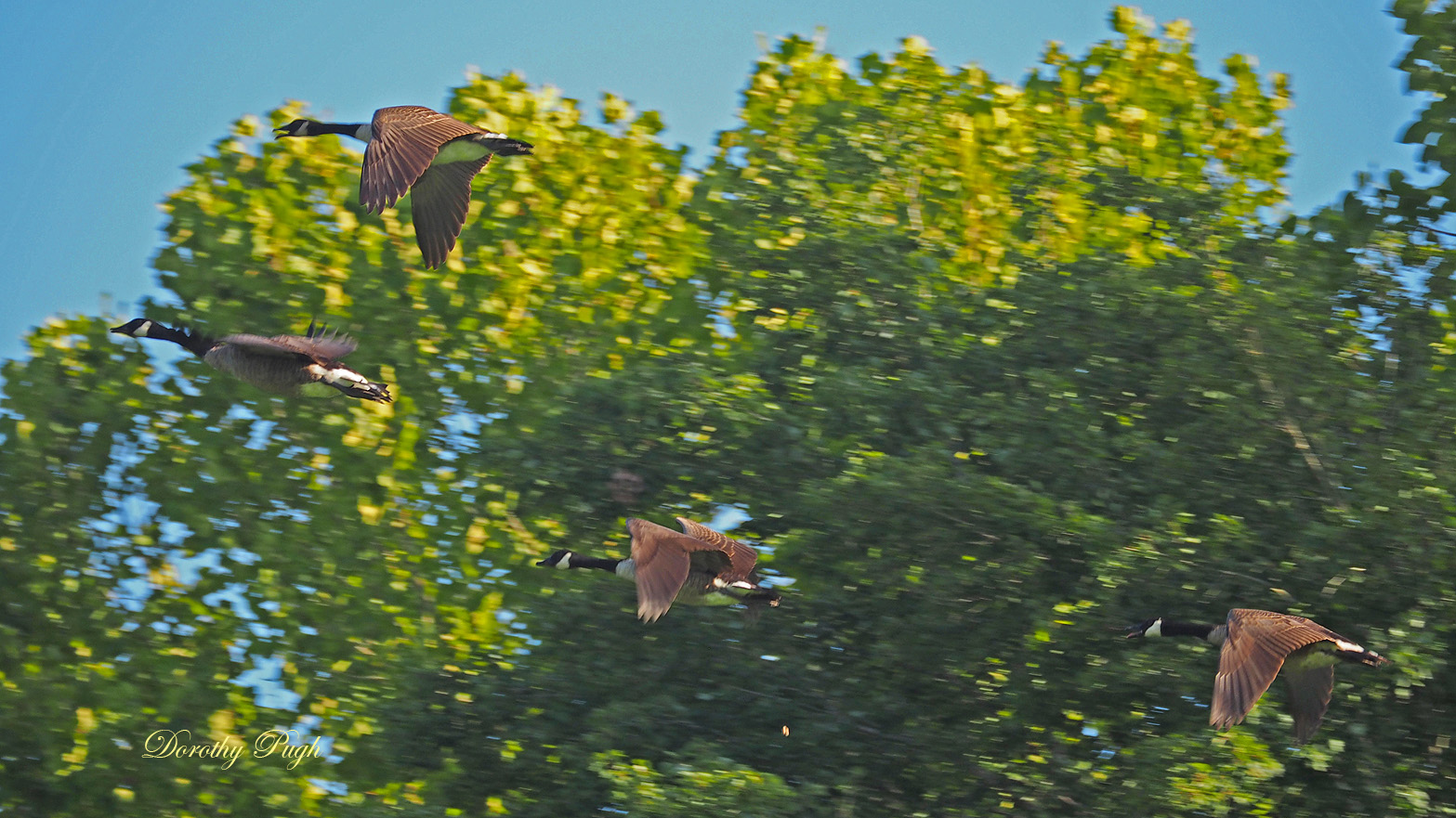 (Double-crested?) Cormorants flying west, viewed from the Battle Acre