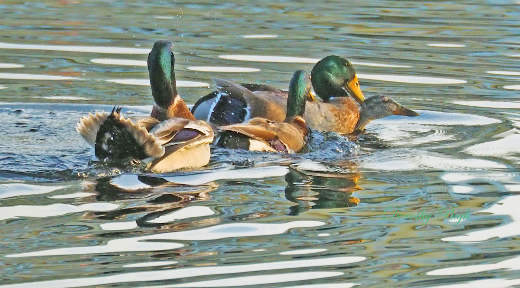 Mallards mating, with interlopers having given up, Carolina Lake, Carolina Beach, New Hanover County, NC, 3/14/19 |