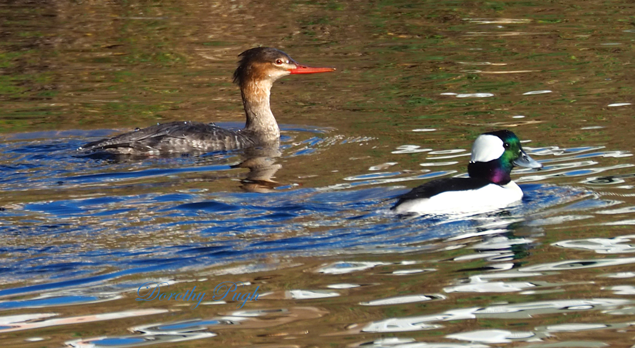 Female Red-breasted Merganser and male Bufflehead, Carolina Lake, Carolina Beach, New Hanover County, NC, 12/23/18 |