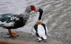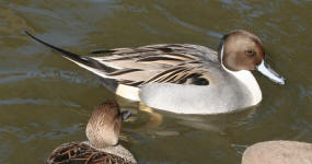 Pintail Duck with Barnacle Goose and a Common Shelduck in the background, Duke Gardens, Durham, NC, 4/27/15 |