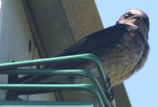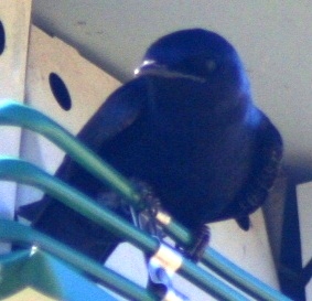| Female Purple Martin, manifesting no fear (but perhaps disapproval!) at close range. Durham, 4/28/06. | |