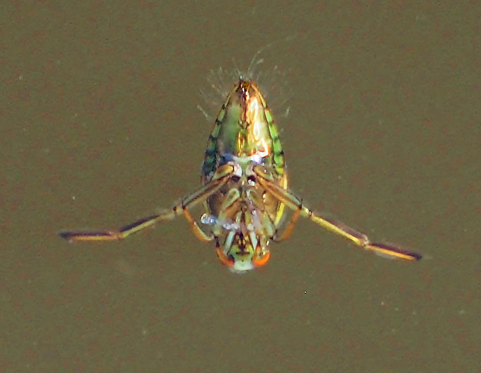 | Gulf Fritillary on zinnia | Ambush bug and bee prey on goldenrod | Backswimmer in pond | Frog | Frogs |