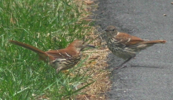 | Fledgling Blue Jay. It flew away shortly after this photo was taken. | Brown Thrashers |