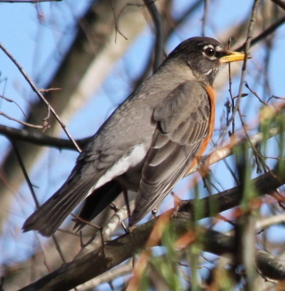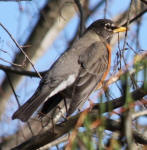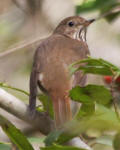 | Pine Warbler, near bird feeder behind the Visitor Center, 3/22. Note the banded leg. | Hermit Thrush, deep in the woods, 3/23 |