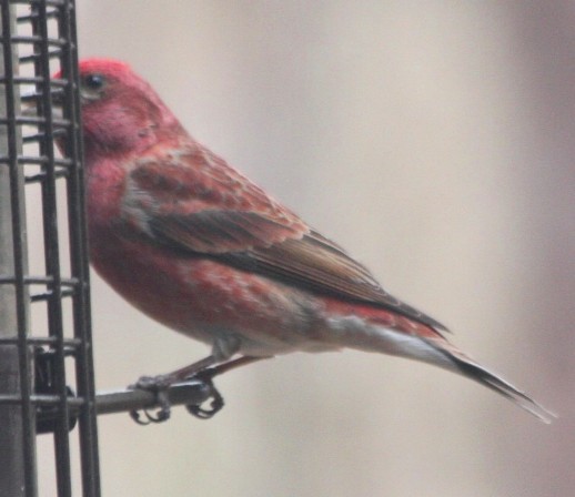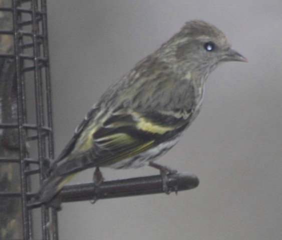 | Pine Siskin in the morning gloom. Yes, they're still coming! | Pine Siskin | Male Purple Finch |