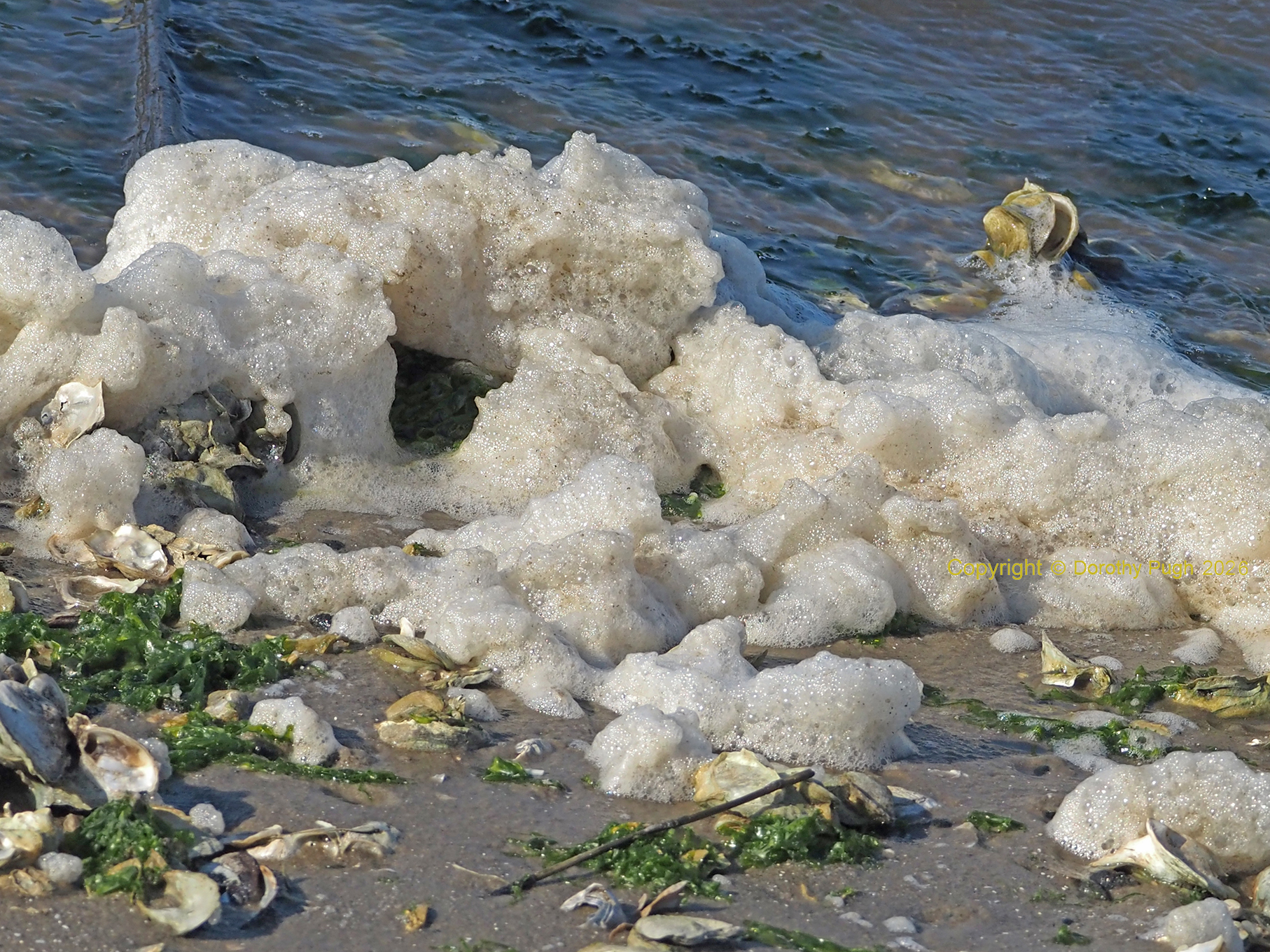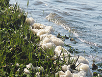 Foam along the shore of the "Basin", a shallow area jutting off of the Cape Fear River |