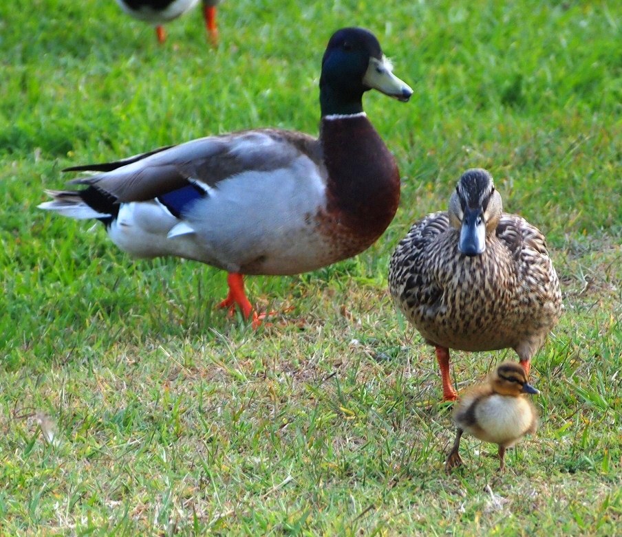 | Mallard family with frisky duckling, apparently out of control, Lake Park | Common Starling | Eurasian Collared Dove | Young male Red-winged Blackbird, Lake Park |
