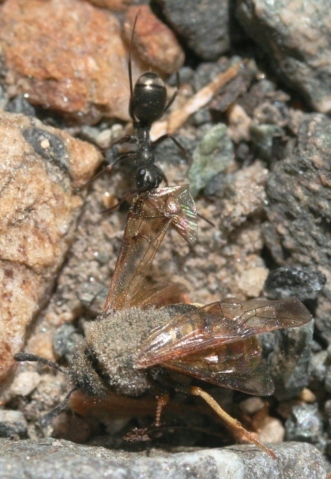 | Oak Treehopper | Flower fly, maybe an Allograpta obliqua, subfamily Syrphinae | Bee-like robber fly (Laphria sericea). Alas, very confusing shadows! | Red-banded Hairstreak | Male Broadhead Skink |