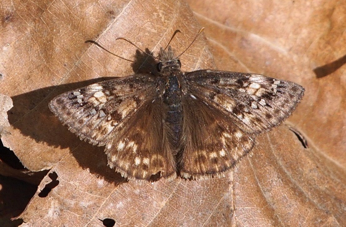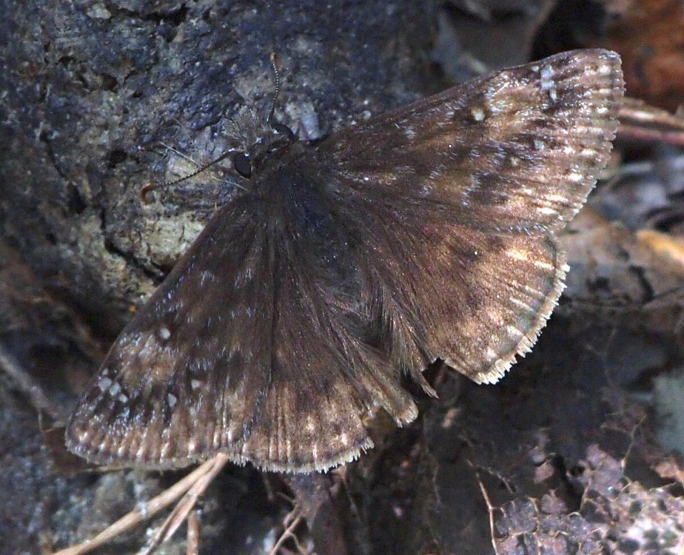 | Flower fly (Sericomyia chrysotoxoides), seen near Cook's Wall lookout. Tentative ID thanks to JBurger. | Male Juvenal's Duskywing |