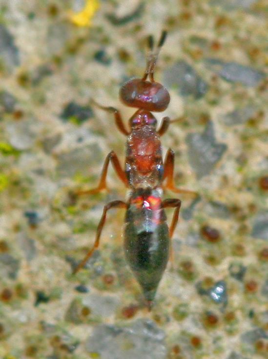 Parasitoid wasp (Gelis genus), Durham, NC, 9/23/20. Winglessness is apparently a function of the time of year, when such wasps stay on the ground. ID thanks to John Rosenfeld.