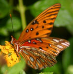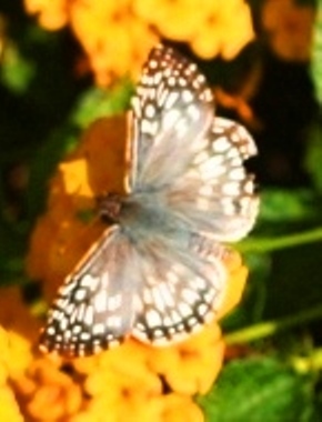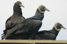 | Black Vultures (Coragyps atratus). These were sitting on top of a cabin. See other birds. The leftmost vulture may be a juvenile. | Male Tropical Checkered Skipper (Pyrgus oileus). ID confirmed by Harry LeGrand (see the Butterfly Digest for 10/15/07 ), | Gulf Fritillary | Water lilies on Lake Marion |