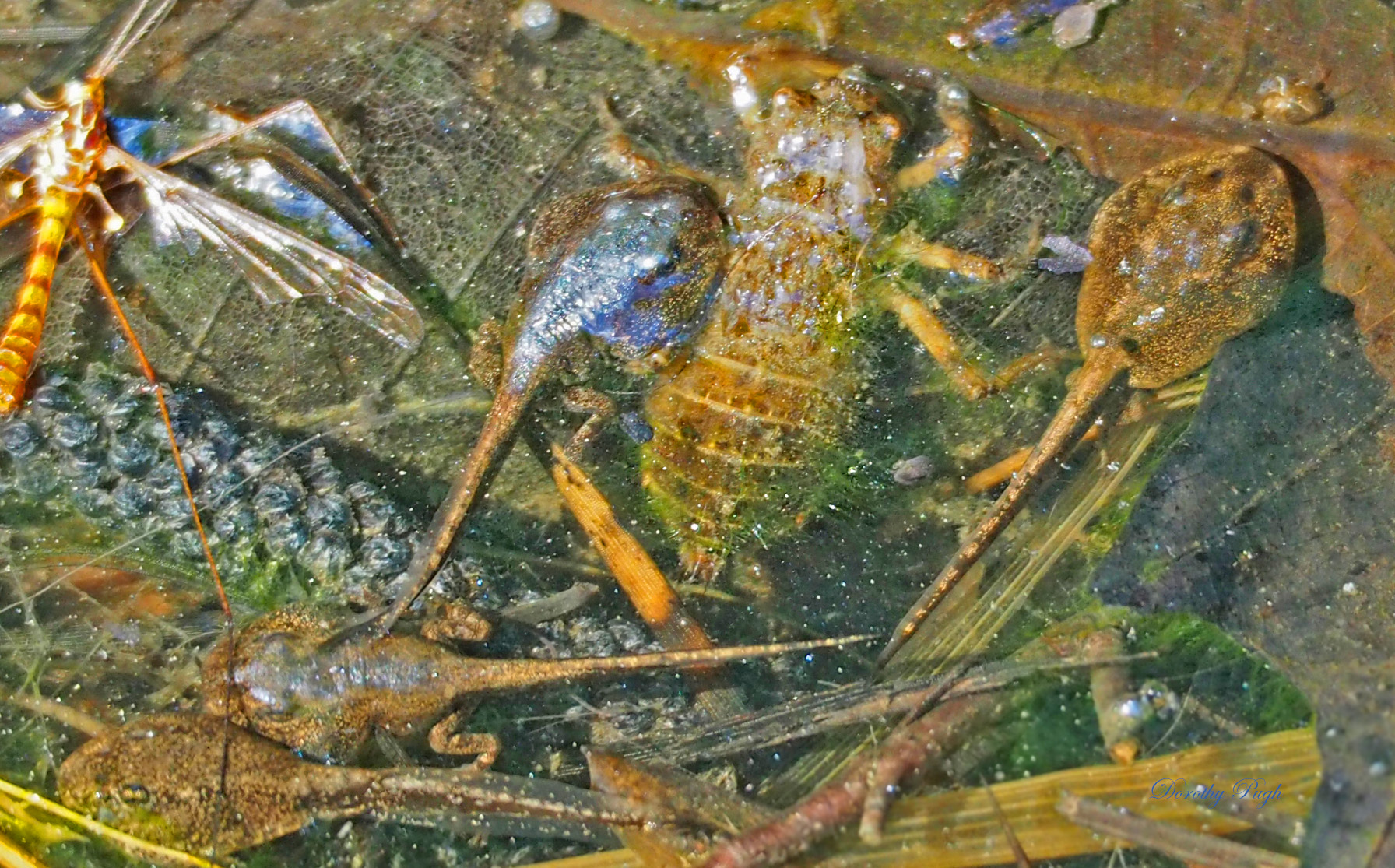 | Dragonfly nymph, with crane fly and tadpoles, Durham, NC 4/27/16 |