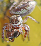 | Jumping spider (maybe female Pelegrina Proterva?) with spider prey |