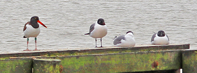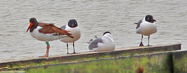 American Oystercatcher with Laughing Gulls |