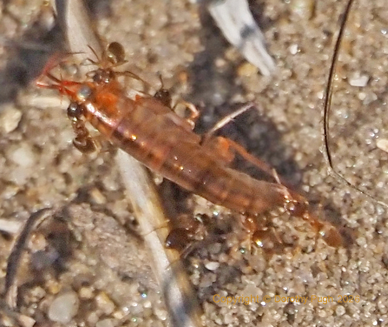 Ants carrying a crayfish |
