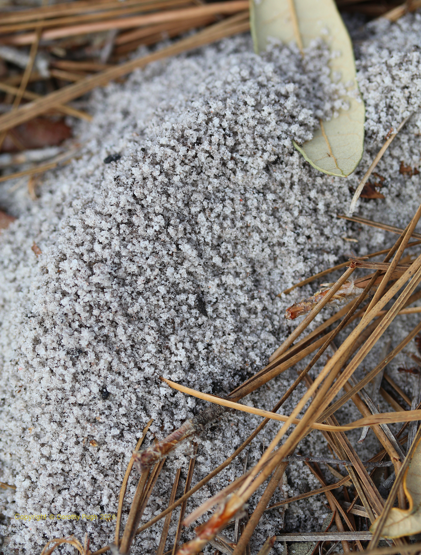 It looks like sand, but in fact was very soft, the way you would expect a pile of dustbunnies to feel. |