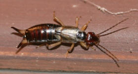 | Earwig (Forficula auricularia), Durham, NC, 5/25/08 | Earwigs (Forficula auricularia) on Common Milkweed, Durham, NC, 5/7/24 |