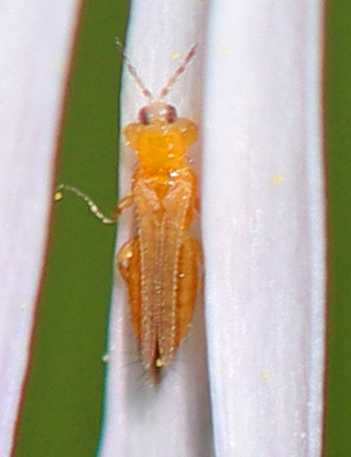 | Flower thrip (Frankliniella tritici), Durham, NC, 5/31/18. Seen on Daisy Fleabane. | Tube-tailed thrip (Phlaeothripidae family), Durham, NC, 1/4/20. Family ID thanks to Ken Wolgemuth. | Tubetail thrip, showing beak, Durham, NC, 2/23/21 | Tubetail thrip (Megalothrips bonanni), Durham, NC, 2/23/21. ID thanks to Manfred R. Ulitzka. | Flower thrip on an American Persimmon fallen flower, Durham, NC, 5/8/25 |